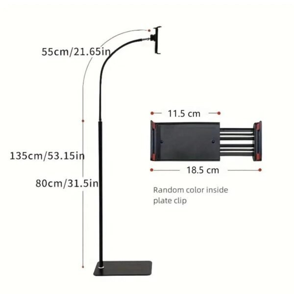 MEJORADA Soporte de Suelo Ajustable para Tablet y Móvil 135cm – Base Metálica Antideslizante, Brazo Flexible 360°, Compatible con iPad y Smartphone
